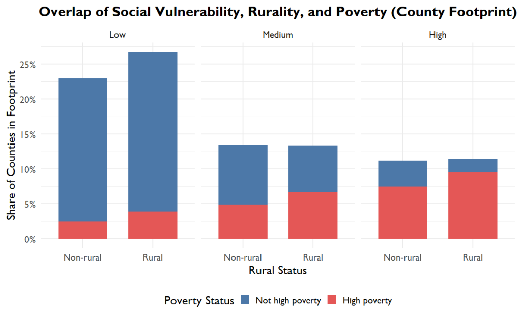 Figure 1. Overlap of Social Vulnerability, Rurality, and Poverty Across the Healthcare Footprint.